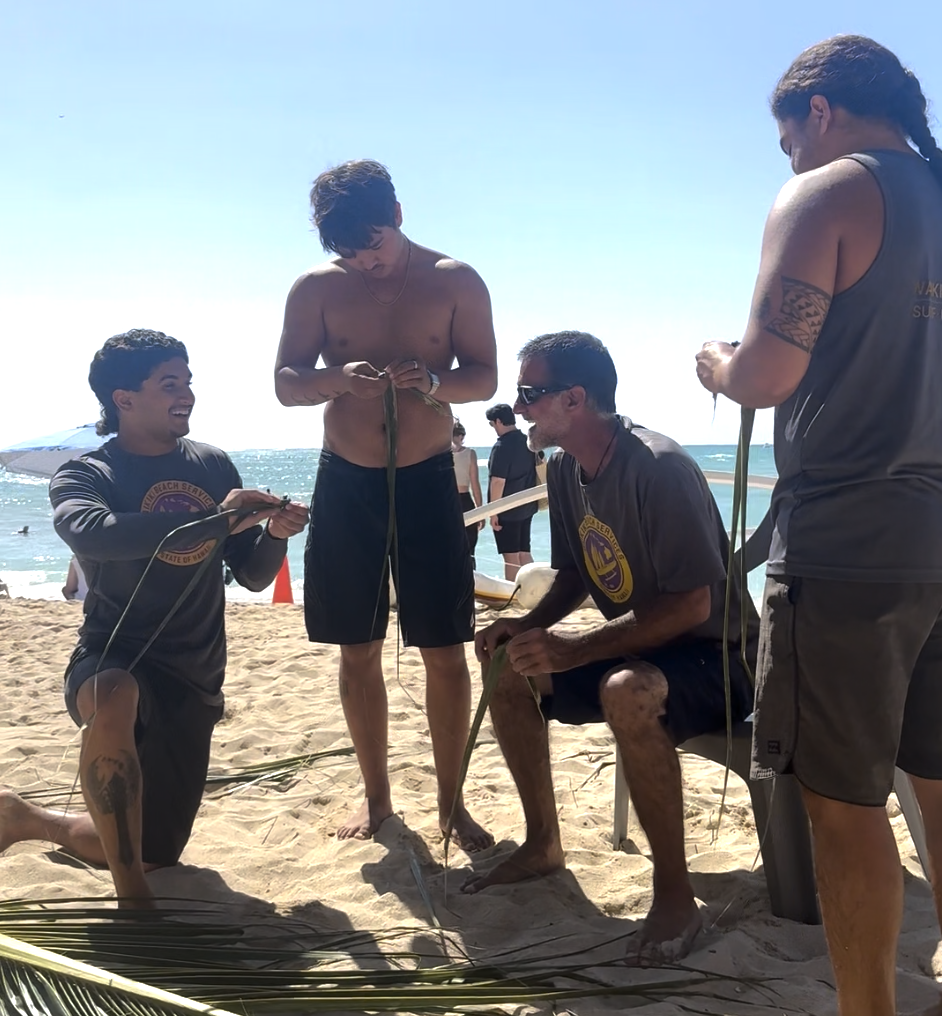 From the days of Duke Kahanamoku to the present, the beach boy tradition has been about more than standing up on a board. It is about standing for something. So when Rich teaches Diego, Koa, and Blaise to weave lau niu, it is part of that same lineage. Knowledge passed down. Skill shared freely. Culture kept alive through action.